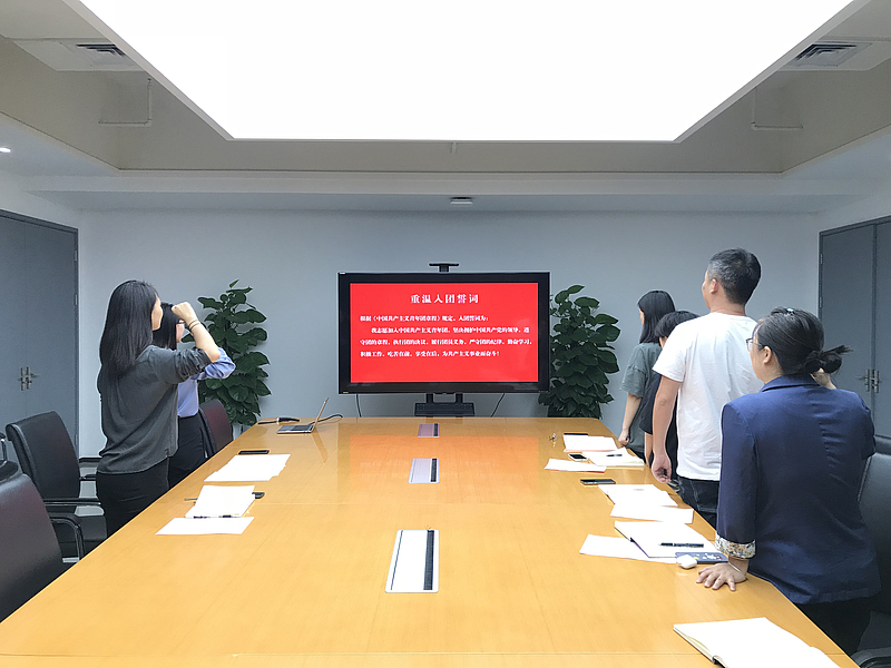 會議宣布陜西西咸海綿城市工程技術有限公司團支部正式成立,并介紹團支部書記候選人相關情況,會議表決通過由王芳同志任海綿城市技術公司團支部書記。王芳同志帶領全體團員重溫入團誓詞,齊唱團歌,全體團員高舉右手,莊嚴宣誓。