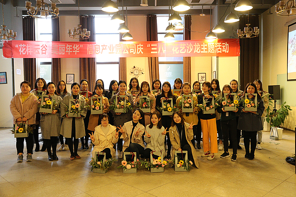 為慶?!叭恕眹H勞動婦女節,進一步豐富女職工的精神生活,陶冶性情、提高藝術修養,3月8日上午,信息產業園公司組織全體女職工開展了以“花樣云谷、美麗年華”為主題的“慶3·8”花藝沙龍主題活動。