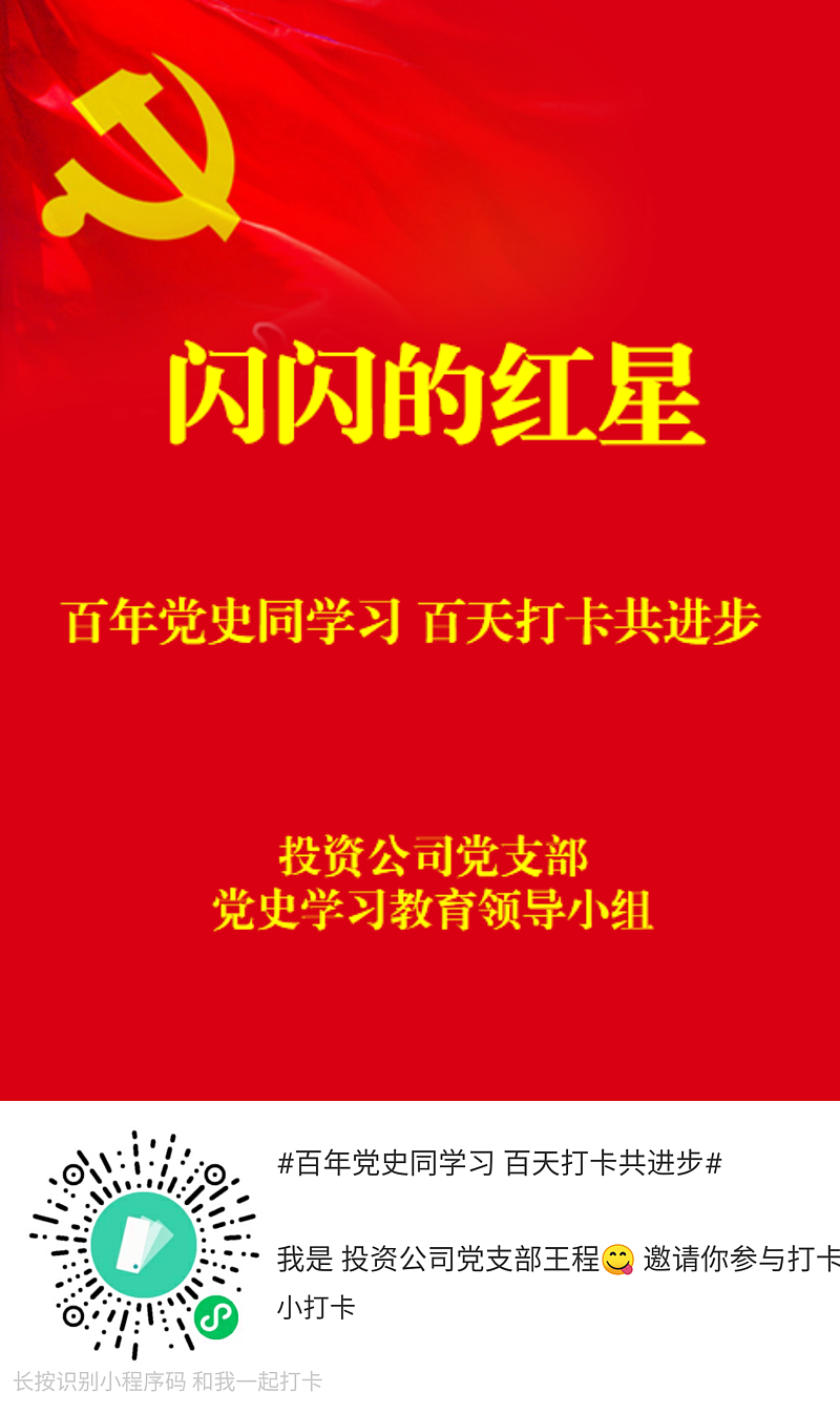 灃西集團(tuán)投資公司黨支部號(hào)召青年黨員團(tuán)員:與我們一同,堅(jiān)持百天紅色打卡,走近建黨百年的偉大征程,感悟中華兒女的宏偉史詩(shī)。