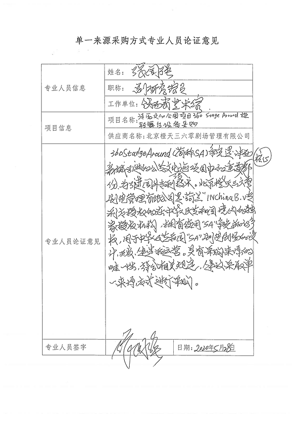 采用單一來源采購方式的原因及說明:該項目擬采購的機械及系統(tǒng)是為青少年宮及青少年活動中心采購的國際新技術(shù)產(chǎn)品,且橙天嘉禾投資有限公司具備國家知識產(chǎn)權(quán)局授予的“劇場結(jié)構(gòu)”實用新型專利(專利號:ZL 2018 2 1034718.2)。北京橙天三六零劇場管理有限公司為橙天嘉禾投資有限公司在西安使用該專利的唯一被授權(quán)人,且為該系統(tǒng)知識產(chǎn)權(quán)在中華人民共和國境內(nèi)獨家被授權(quán)人,滿足單一來源采購條件。專業(yè)人員具體意見詳見附件。