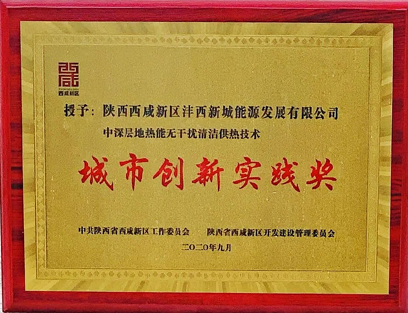 中深層地?zé)崮軣o干擾清潔供熱技術(shù)榮獲西咸新區(qū)城市創(chuàng)新實(shí)踐獎(jiǎng)