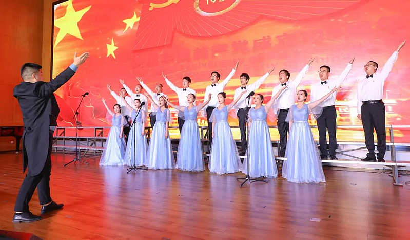 一首紅歌就是一面旗幟。“你卷走黑夜迎來(lái)晨曦,火紅的心把我們集合在一起,救國(guó)救民是你喊出的真理,中國(guó)的明天放在了我們心里……”《迎風(fēng)飄揚(yáng)的旗》《紅旗飄飄》《不忘初心》《陽(yáng)光路上》等用奔騰奮發(fā)的曲調(diào),展現(xiàn)在中國(guó)共產(chǎn)黨的堅(jiān)強(qiáng)領(lǐng)導(dǎo)下,中華民族實(shí)現(xiàn)了從站起來(lái)、富起來(lái)到強(qiáng)起來(lái)的偉大飛躍,表達(dá)出灃西人堅(jiān)定不移跟黨走,拼搏奮進(jìn)新時(shí)代的使命。
