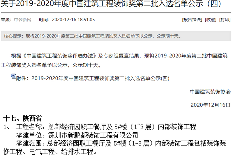 2020年,置業(yè)公司灃西國(guó)際大廈機(jī)電安裝工程項(xiàng)目榮獲中國(guó)安裝工程優(yōu)質(zhì)獎(jiǎng)(中國(guó)安裝之星)、總部經(jīng)濟(jì)園職工餐廳及5#樓內(nèi)部裝飾工程榮獲中國(guó)建筑工程裝飾獎(jiǎng)。