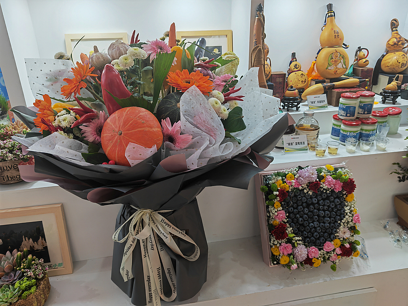 蔬菜禮盒,藍莓花盒——“原來蔬菜花束可以這么美啊”。鮮花圍繞包裹著蔬菜、藍莓,不但時尚好看,而且還實用,賞完造型還能吃,滿滿都是心意。