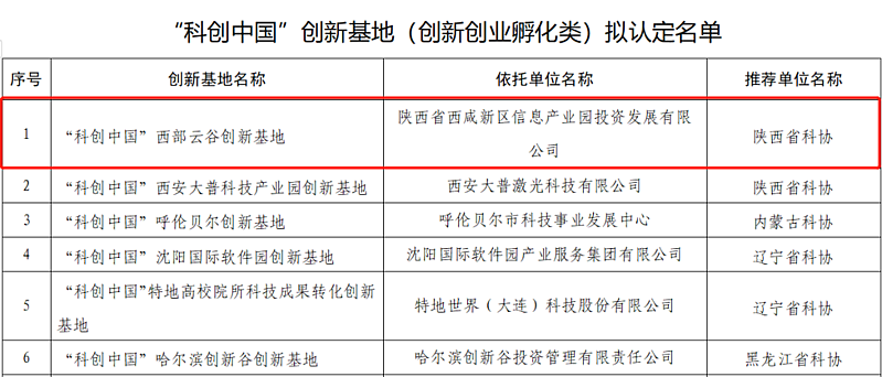 近日,中國科協發布2022年“科創中國”創新基地認定結果公告,由陜西省科協推薦的西部云谷創新基地(灃西集團信息產業園公司)入選首批“科創中國”創新基地(創新創業孵化類)。