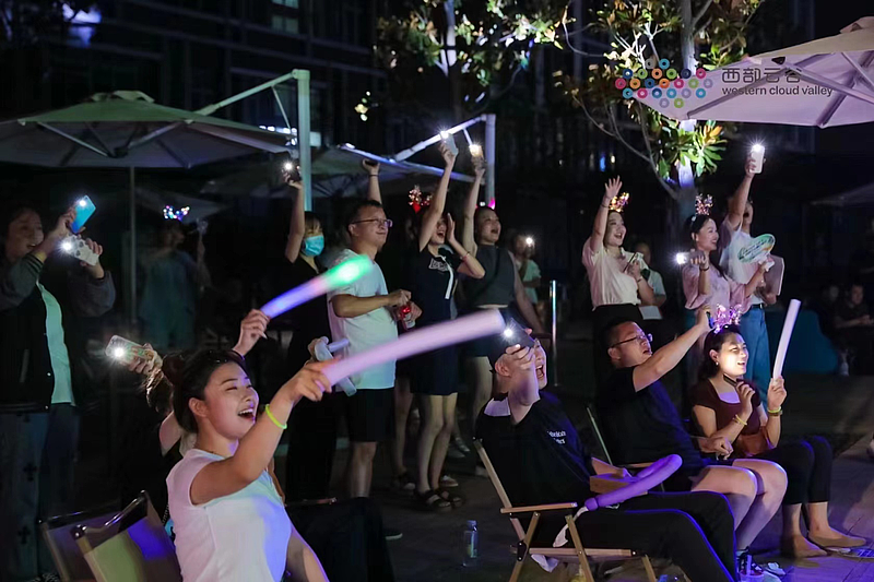傍晚的西部云谷二期,滿是歡聲笑語,聲浪一波接一波,場面十分火爆,炎熱的天氣也阻擋不了到場觀眾的滿懷熱情。伴隨動(dòng)感的音樂,燈光交織輝映,大家揮舞著熒光棒,狂掀激情與音浪交融的視聽盛宴。