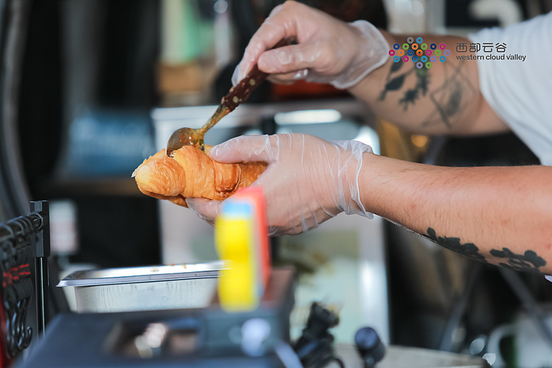 后備箱打開,掛配一塊天幕、一排椅子,再配上小夜燈……現(xiàn)場除了樂隊(duì)歌手、觀眾,現(xiàn)場還停放了很多車輛。一個(gè)氛圍感十足的移動(dòng)咖啡館、移動(dòng)奶茶店就此營業(yè)。掛著小彩燈的小型汽車整齊停放,車主們將自己的后備箱精心裝飾后擺上咖啡、奶茶、蛋糕等消費(fèi)品供前來聽音樂節(jié)的嘉賓選購,“后備箱集市”吸引了不少目光。