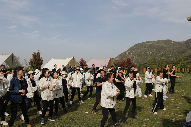 歷經兩個多小時的登峰后,大家開始進行“撲面而來”“背部運球”“齊力拔河”等趣味活動,一直持續到日光西斜,在歡聲笑語里,共享團建歡愉。