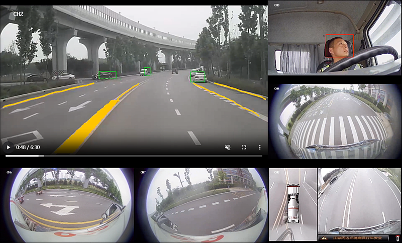 駕駛員行為監測系統。對駕駛員臉部、眼部、體態等細節特征進行智能分析,精準識別司機疲勞駕駛、分神、打電話等異常行為,針對危險情況及時發出警報進行提醒,有效預防因駕駛員行為不當導致的交通事故。