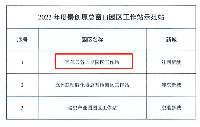 近日,經秦創(chuàng)原創(chuàng)新促進中心組織評選,西部云谷二期園區(qū)工作站成功榮獲“2023年度秦創(chuàng)原總窗口園區(qū)工作站示范站”稱號。