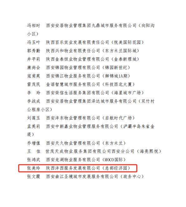 近日,西安市物業管理行業協會經過推選征集、專家評審、媒體公示等環節,最終評選出145名“最美物業人”,并召開表彰大會進行表彰,灃西服務員工張美玲榮獲“最美保潔員”殊榮。
