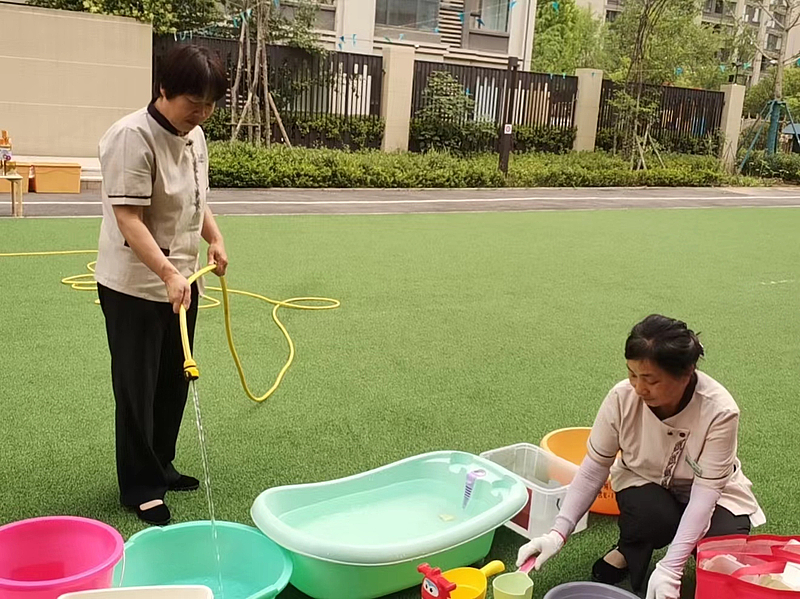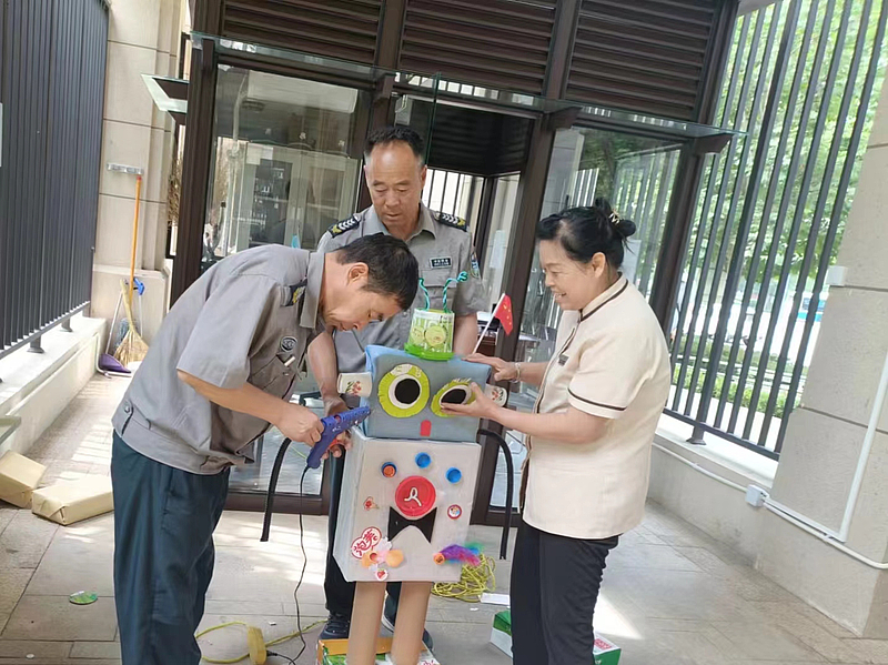 多彩童年,歡樂無限,校園的每個角落都充斥著節(jié)日的喜悅。灃西同禮幼兒園的保潔和秩序維護員利用工作空閑時間將平日收集的紙箱、飲料瓶等變廢為寶,為活動場地加上一抹不一樣的色彩;灃西第十幼兒園的保潔早早將水盆和水桶里蓄滿水,為打水仗活動做好充足的物資供應(yīng);創(chuàng)新港西安交通大學(xué)附屬小學(xué)的項目人員幫助學(xué)校老師為孩子們準(zhǔn)備精美的節(jié)日禮物;灃西第七小學(xué)的保潔耐心地把孩子的創(chuàng)意手工繪畫作品展擦洗至干凈無塵……他們以愛為底色,用心做好“學(xué)苑管家”。