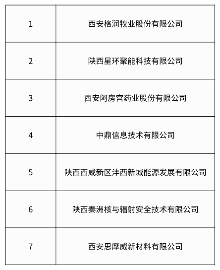 灃西新城納入省級上市后備企業(yè)庫的7家企業(yè)名單