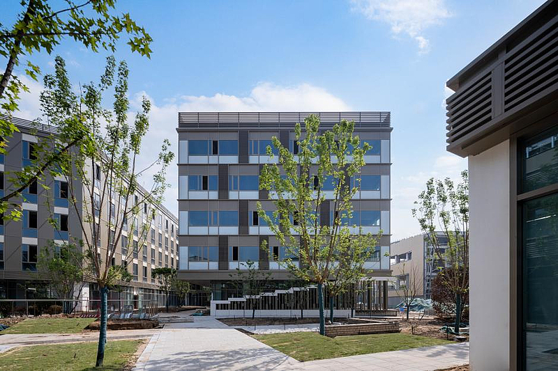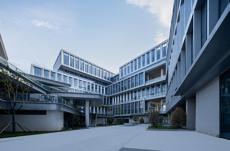 5單元位于秦創(chuàng)原生態(tài)科創(chuàng)島北側(cè),占地面積130.6畝,總建筑面積22.44萬(wàn)㎡(地上建面14.29萬(wàn)㎡,地下建面8.15 萬(wàn)㎡,車(chē)位數(shù)量1683個(gè)),是集科研辦公、創(chuàng)客中心、品質(zhì)住宅及花園商業(yè)為一體的科技轉(zhuǎn)化研發(fā)基地,建筑采用圍合式布局形式,通過(guò)退臺(tái)及錯(cuò)層的手法,豐富城市天際線(xiàn)變化的同時(shí),提升區(qū)域整體的標(biāo)識(shí)性,活化內(nèi)外空間的聯(lián)系。