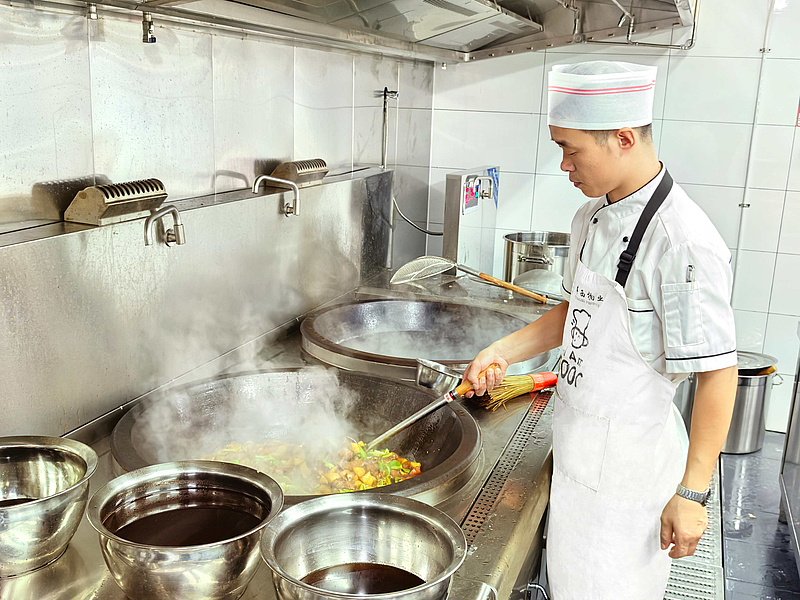 走進餐廳,映入眼簾的是明亮干凈的就餐環境,桌椅擺放整齊,用餐氛圍舒適,后廚整潔有序,專業廚師團隊從食材挑選到烹飪出品,每道工序都嚴格把控,讓大家吃得更安心。