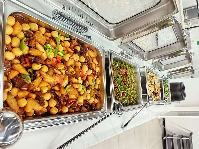 菜品上融合了南北風味,既有北方的面食、燉菜,也有南方的小炒、湯品,能滿足不同員工的口味偏好。試營業當天,首批用餐的園區員工對餐廳的菜品口感、分量及就餐環境都給出了一致好評,大家紛紛表示 “以后在園區就能吃好,既方便又健康”。