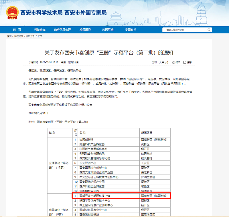 近日,西部云谷硬科技小鎮(zhèn)一期被認(rèn)定為西安市秦創(chuàng)原成果轉(zhuǎn)化“加速器”示范平臺(tái)之一。