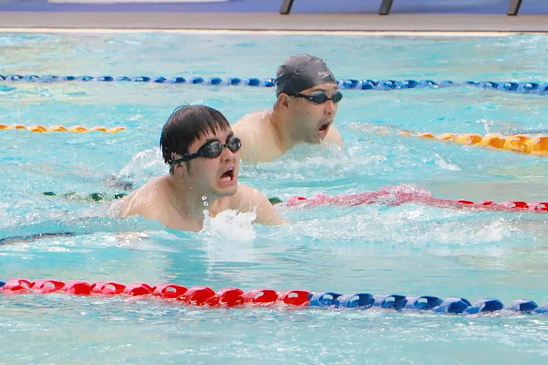 泳池賽道內(nèi)你追我趕,蛙泳、自由泳輪番上演,隨著浪花翻滾,展現(xiàn)著速度與激情。在最后的沖刺階段,參賽選手們紛紛火力全開,用拼搏的信念一次次沖擊著體能的極限,一遍遍刷新著自己的最好成績。