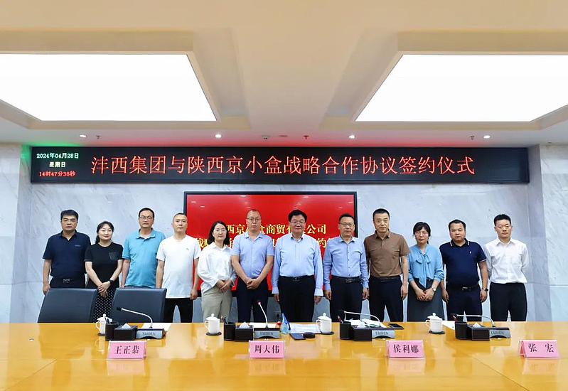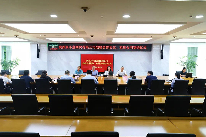 4月28日下午,灃西集團與陜西京小盒商貿有限公司(以下簡稱“京小盒”)戰略合作協議暨租賃合同簽約儀式順利舉辦,灃西集團黨委書記、董事長楊建柱,總經理郭廷喜和副總經理秦繼紅參加。