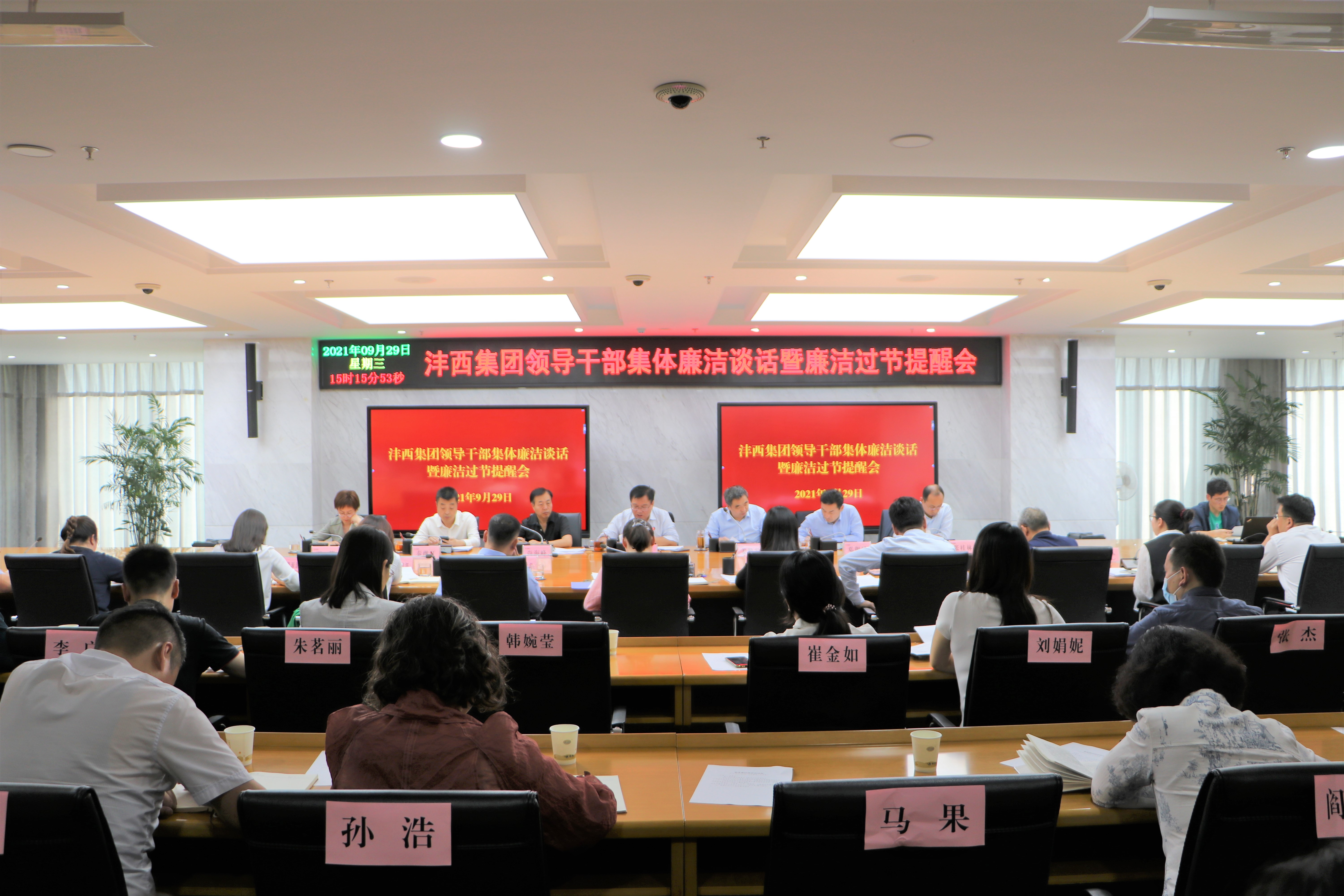 9月29日灃西集團召開集體廉潔談話暨廉潔過節提醒會,黨委書記、董事長楊建柱出席會議并講話,總經理姜勤發主持,其他在家班子成員參加。會議學習了近期上級紀檢監察機關通報的違反中央八項規定精神和“四風”問題典型案例、中央紀委國家監委在響水特別重大爆炸事故發生后徹查問題推動整改情況,部分部門、子公司主要負責人匯報本單位黨風廉政建設主體責任和個人“...