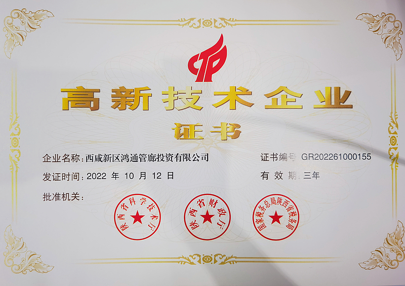 近日,陜西省科技廳公布陜西省2022年第一批高新技術企業名單,灃西新城綜合管廊的運營服務者,灃西集團投資公司全資子公司——西咸新區鴻通管廊投資有限公司,光榮上榜!五位一體多項突破在管廊公司的“精心守護”下,灃西新城綜合管廊穩步提升,實現了運營里程、運營收入、安全運維和運維模式四個突破。堅持智能化管理,首次將區塊鏈技術應用于管廊機器人智能巡...
