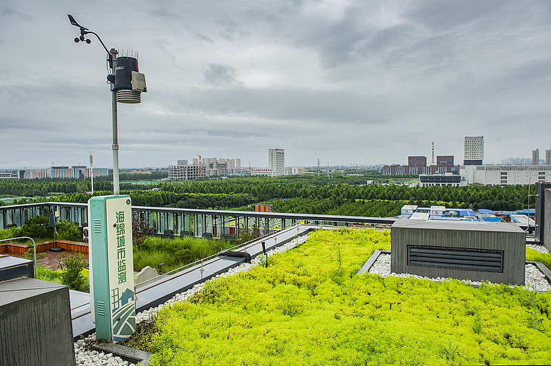九月秋高氣爽,站在灃西新城的一棟大樓頂層放眼望去,記者被眼前的一幕深深震撼。很多大樓原本色彩單一的樓頂,生機盎然,各種綠植長勢旺盛,花卉五彩繽紛。據悉,屋頂花園通過種植佛甲草、景天、馬藺等耐旱耐澇、適應性強的植物品種,使雨水被土壤介質和植物根系充分吸收,從而起到滯留、吸收、凈化雨水,減少城市內澇的作用。而同時,滯蓄的雨水,也為大樓周邊區域的植物澆灌、道路沖洗、景觀用水等提供部分水源。