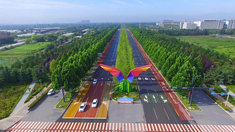 豐邑大道為南北走向,南起灃西大道,北至世紀大道,全長約5938米,規劃道路紅線80米,兩側預留35米綠化帶,占地面積約為516畝,雙向八車道,道路等級為城市主干道。