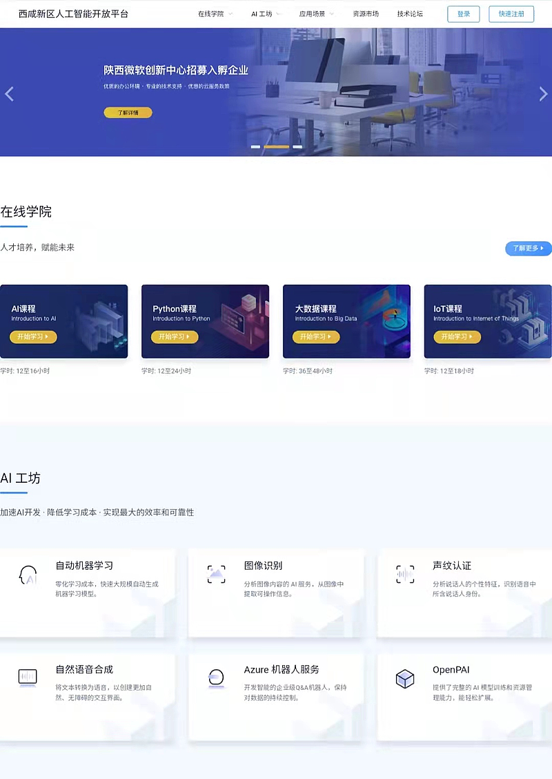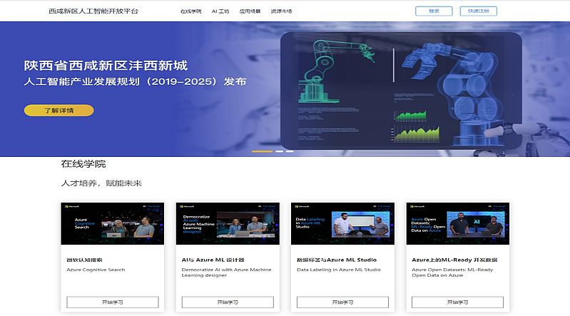 西咸新區(qū)人工智能開放平臺項目服務于我省高校、科研機構、開發(fā)型初創(chuàng)企業(yè)、政府、垂直領域各行業(yè)開發(fā)者,向社會公眾提供云資源服務和人工智能綜合服務。平臺功能分為在線學院、AI工坊、應用場景、資源市場和技術論壇五個版塊,為用戶提供人工...[更多]